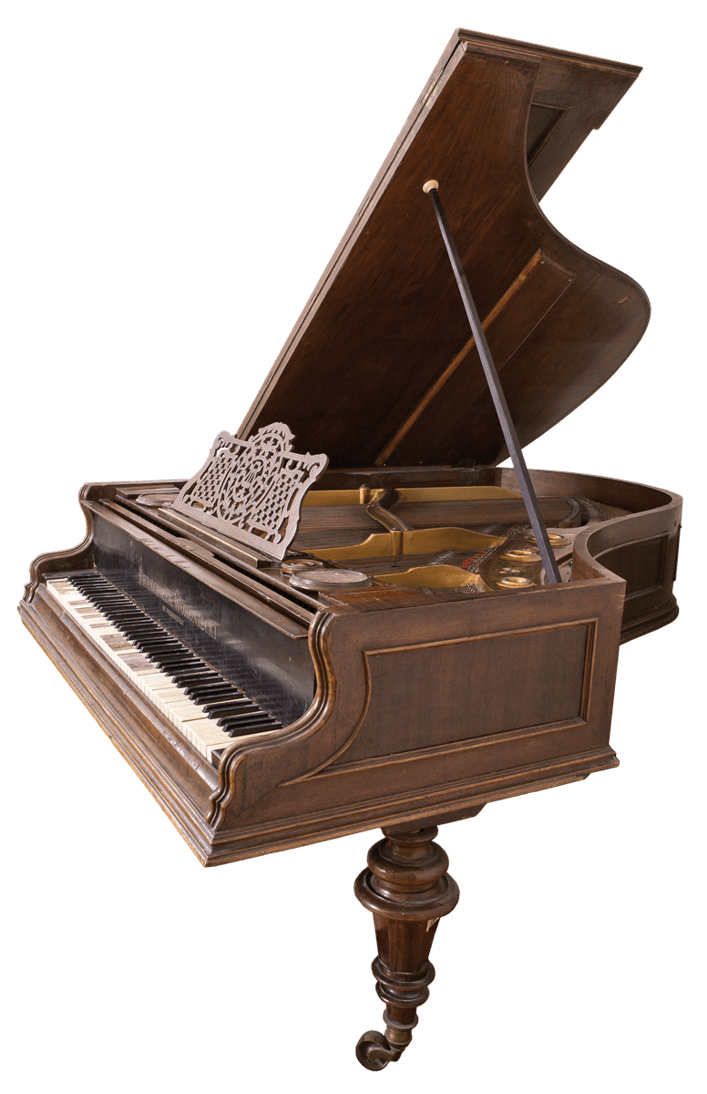 na pokrywie klawiatury inkrustowany mosiądzem napis: franciszek woroniecki / w przemyślu.