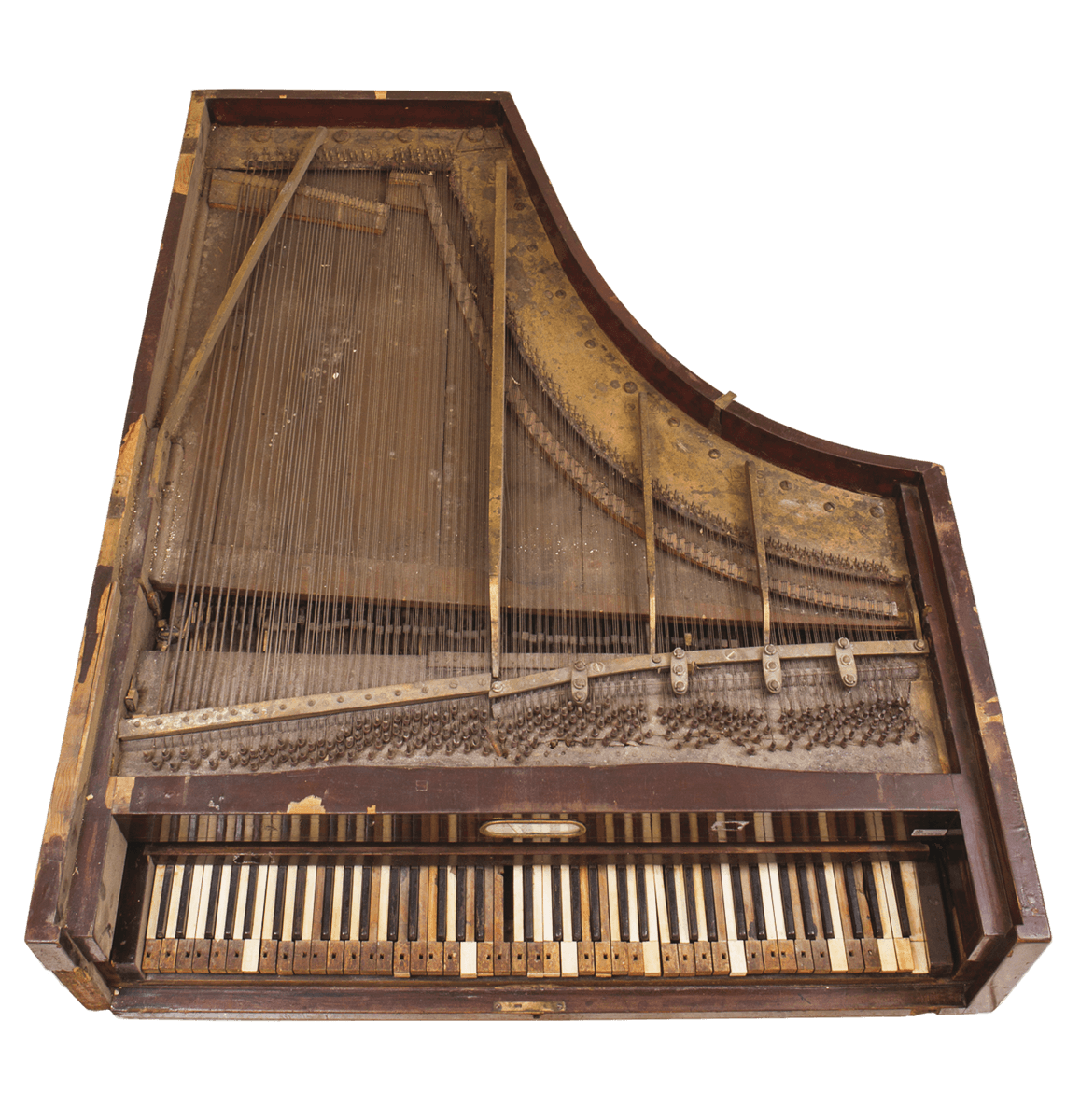 prostostrunny, rama półmetalowa z 3 wspornikami i listwą naciskową dla górnej połowy naciągu, zakres c1-g 4 – 6½ oktawy, naciąg 1-2-3-strunny, mechanika wiedeńska z tłumikami klinowymi, 2 pedały – una corda i podnośnik tłumików. skrzynia skrócona przez ucięcie ogona o ok. 800 mm. dodana basowa listwa zaczepowa, metalowe wsporniki ramy w basie i w wiolinie, listwa naciskowa dla dolnej połowy naciągu strunowego. struny basowe wymienione na grubsze. brak pulpitu, nóg, zawieszenia pedałów.