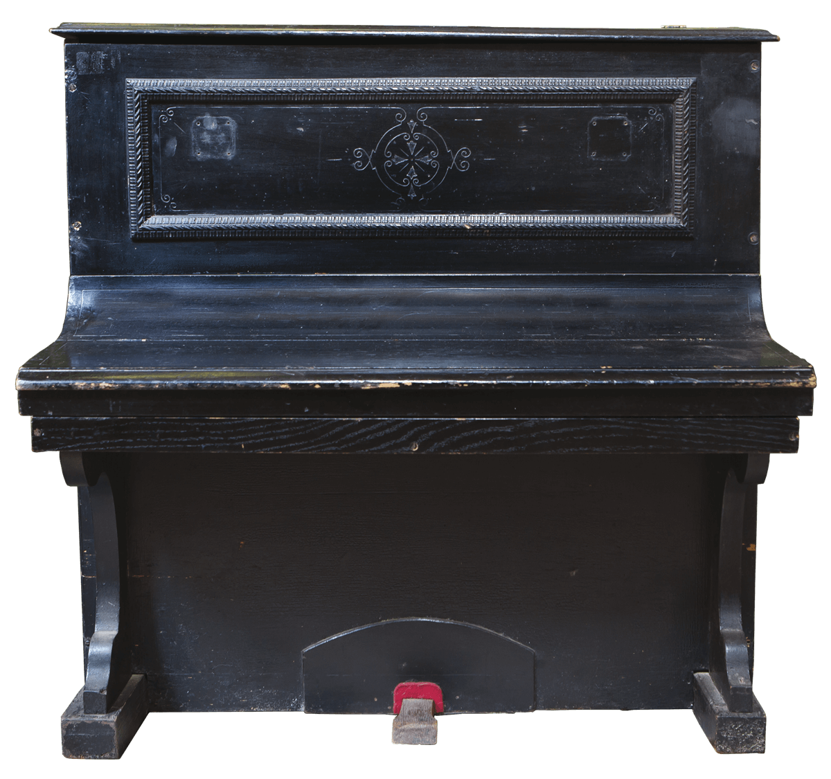czarno politurowane, skrzynia z pełnego drewna ozdobiona żłobionym ornamentem geometryczno–roślinnym. na drzwiach górnych 2 podwójne świeczniki z brązu. całość wsparta na nogach o zmiennym ustawieniu, pozwalającym podwyższać i obniżać instrument, okleina klawiatury – celuloid, czarno barwione drewno.